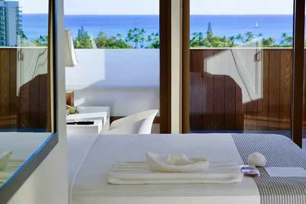 Take in ocean views from our Love + Aloha infinity pool, which is located on the 4th floor & is open daily from 9 AM - 8 PM. The Park View Sauna is open daily from 9 AM - 8 PM. Our Fitness Center is on the 3rd floor & open daily from 8 AM - 9 PM.